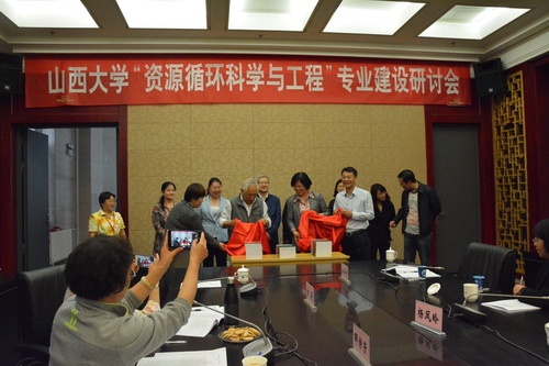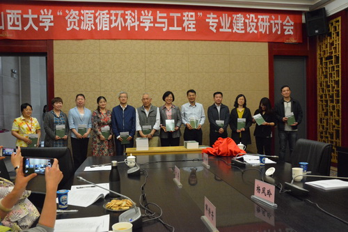 金涌院士、程芳琴副校长、孙俊民和李辉教授在大家的见证下,共同开启《煤基固废资源化高效利用技术与工艺》一书。随后程芳琴副校长向各位专家赠书并与全体人员合影留念。